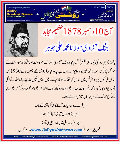 آج 10 دسمبر 1878 عظیم مجاہد جنگ آزادی مولانا محمد علی جوہر