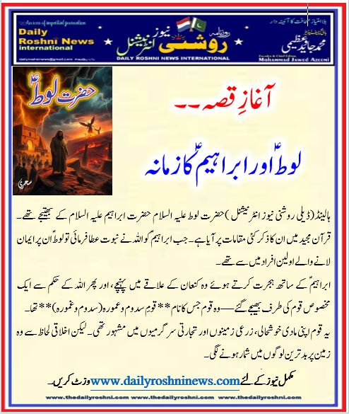 ہالینڈ(ڈیلی روشنی نیوز انٹرنیشنل )حضرت لوط علیہ السلام حضرت ابراہیم علیہ السلام کے بھتیجے تھے۔ قرآن مجید میں ان کا ذکر کئی مقامات پر آیا ہے۔ جب ابراہیمؑ کو اللہ نے نبوت عطا فرمائی تو لوطؑ ان پر ایمان لانے والے اولین افراد میں سے تھے۔