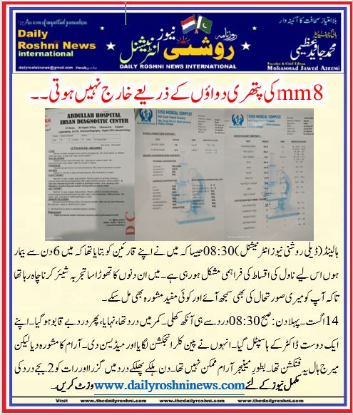 8mm کی پتھری دواؤں کے ذریعے خارج نہیں ہوتی