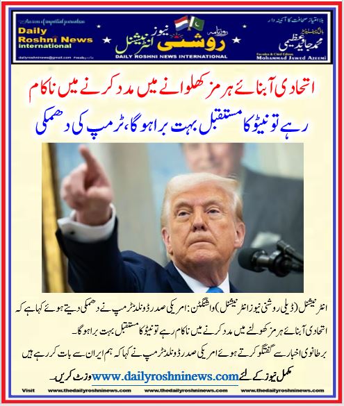 انٹرنیشنل (ڈیلی روشنی نیوز انٹرنیشنل )واشنگٹن: امریکی صدر ڈونلڈ ٹرمپ نے دھمکی دیتے ہوئے کہا ہے کہ اتحادی آبنائے ہرمز کھولنے میں مدد کرنے میں ناکام رہے تو نیٹو کا مستقبل بہت برا ہوگا۔