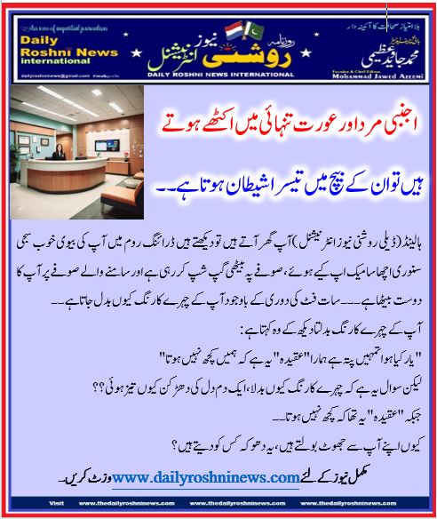 ہالینڈ(ڈیلی روشنی نیوز انٹرنیشنل )آپ گھر آتے ہیں تو دیکھتے ہیں ڈرائنگ روم میں آپ کی بیوی خوب سجی سنوری اچھا سا میک اپ کیے ہوئے ، صوفے پہ بیٹھی گپ شپ کر رہی ہے اور سامنے والے صوفے پر آپ کا دوست بیٹھا ہے ۔۔۔ سات فٹ کی دوری کے باوجود آپ کے چہرے کا رنگ کیوں بدل جاتا ہے ۔۔
