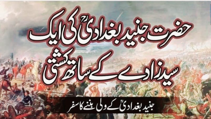 اتنا کہنے کے بعد حضرتِ جُنید رحمۃ اللہ علیہ خَم ٹھونک کر للکارتے ہوئے آگے بڑھے اور سچ مُچ کُشتی لڑنے کے انداز میں تھوڑی دیر پینتر ا بدلتے رہے ۔ لیکن دوسرے ہی لمحے میں حضرتِ جُنید رحمۃ اللہ علیہ چاروں شانے چِت تھے اور سینے پر سَیِّدہ فاطِمہ زَہرہ رضی اللہ تعالیٰ عنہا کا ایک نحیف و ناتُواں شہزادہ فتح کا پرچم لہرا رہا تھا ۔