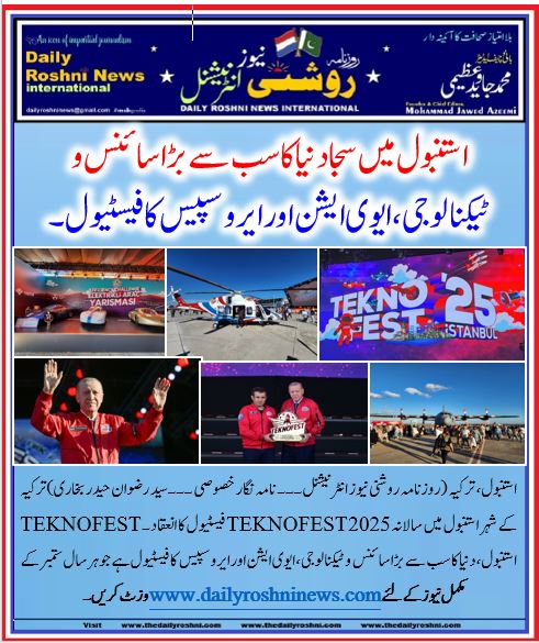 استنبول، ترکیہ (روزنامہ روشنی نیوز انٹرنیشنل۔۔۔ نامہ نگار خصوصی ۔۔۔سید رضوان حیدر بخاری)ترکیہ کے شہر استنبول میں سالانہ 2025 ٹیکنو فیسٹ فیسٹیول کا انعقاد ۔ ٹیکنو فیسٹ استنبول، دنیا کا سب سے بڑا سائنس و ٹیکنالوجی، ایوی ایشن اور ایرو سپیس کا فیسٹیول ہے جو ہر سال ستمبر کے مہینے میں سجایا جاتا ہے ۔۔ اس فیسٹیول کا آغاز 2018 میں صدر ترکیہ رجب طیب ایردوان کی جانب سے کیا گیا تھا جس کا مقصد تھا ترکیہ بھر کے طلباء اور نوجوانوں کو سائنس و ٹیکنالوجی کی طرف مائل کرنا اور ان کی اس فیلڈ میں حوصلہ افزائی کرنا تھا ۔۔۔