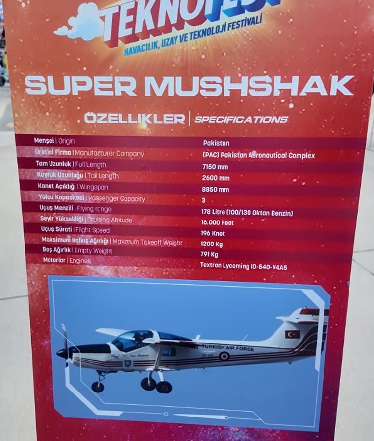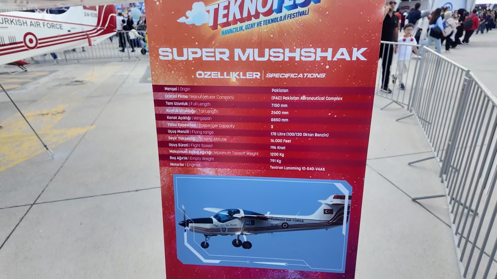 ٹیکنو فیسٹ 2025 میں ترکش ائیر فورس کے زیر استعمال پاکستانی سپر مشاق طیارہ بھی ڈسپلے پر رکھا گیا تھا۔۔