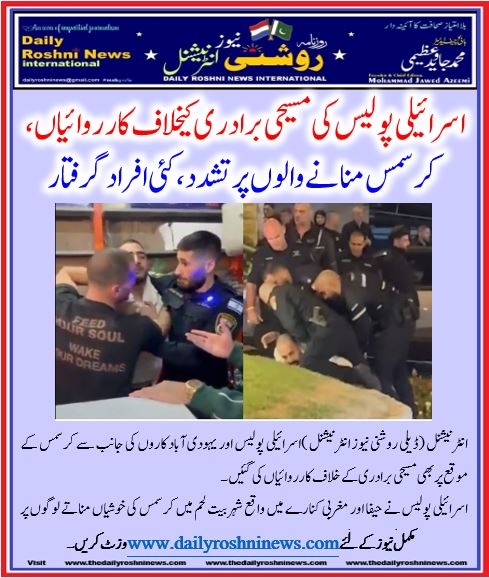 اسرائیلی پولیس اور  یہودی آباد کاروں کی جانب سے کرسمس کے موقع پر بھی مسیحی برادری کے خلاف کارروائیاں کی گئیں۔