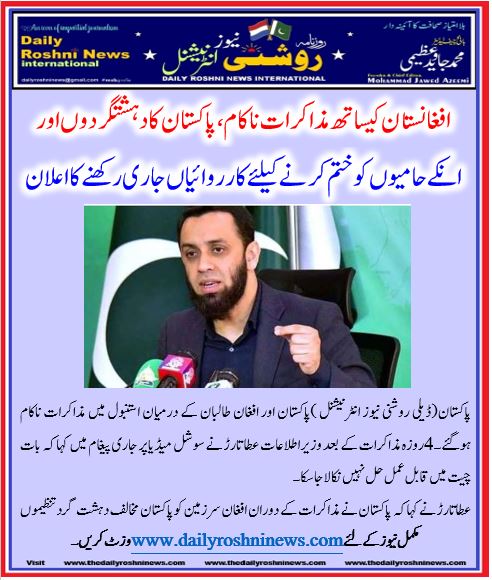 وزیراطلاعات عطا تارڑ   نے پیغام میں کہا کہ طالبان، افغان عوام کو غیر ضروری جنگ میں دھکیلنا چاہتے ہیں، مذاکرات کے دوران افغان طالبان نے الزام تراشی، ٹال مٹول اور  حیلے بہانوں کاسہارا لیا۔