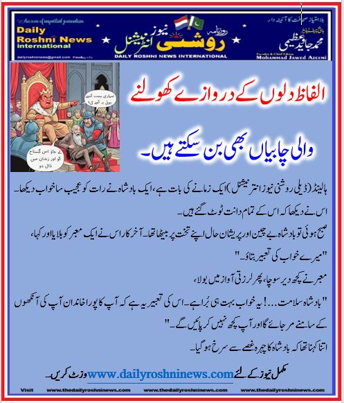 ہالینڈ(ڈیلی روشنی نیوز انترنیشنل )ایک زمانے کی بات ہے، ایک بادشاہ نے رات کو عجیب سا خواب دیکھا۔ اس نے دیکھا کہ اس کے تمام دانت ٹوٹ گئے ہیں۔