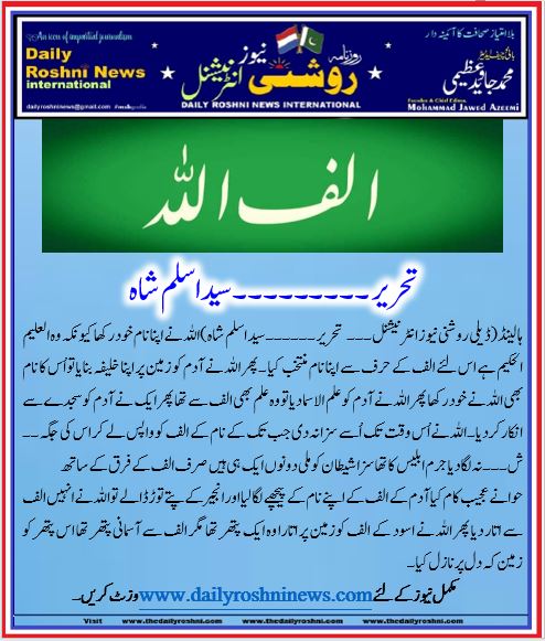 پھر اللہ نے آدم کو علم الاسما دیا تو وہ علم بھی الف سے تھا