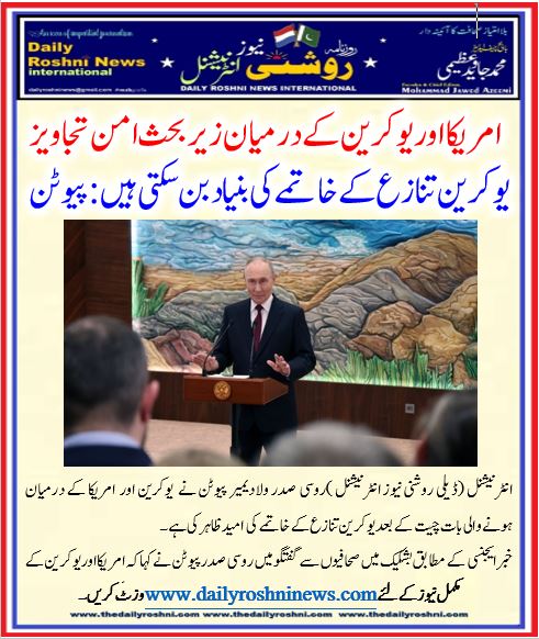 انٹرنیشنل (ڈیلی روشنی نیوز انٹرنیشنل )روسی صدر ولادیمیر پیوٹن نے یوکرین اور امریکا کے درمیان ہونے والی بات چیت کے بعد یوکرین تنازع کے خاتمے کی امید ظاہر کی ہے۔