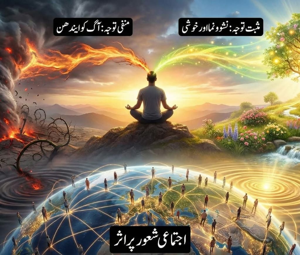 مزید برآں، توانائی اور توجہ کا تصور انفرادی تجربات سے آگے بڑھ کر اجتماعی شعور کو بھی متاثر کرتا ہے۔ اجتماعی شعور مشترکہ عقائد، رویوں، اور توانائیوں کو کہتے ہیں جو سماجی اصولوں اور رویوں کو تشکیل دیتے ہیں۔ انفرادی طور پر ہمارے خیالات اور جذبات اس اجتماعی توانائی میں حصہ ڈالتے ہیں۔ جب بہت سے لوگ اجتماعی طور پر مثبت اقدار جیسے ہمدردی، تعاون، اور انصاف پر توجہ مرکوز کرتے ہیں، تو یہ ایک لہر پیدا کرتا ہے جو سماجی حرکیات کو متاثر کرتی ہے اور مثبت تبدیلی کو فروغ دیتی ہے۔