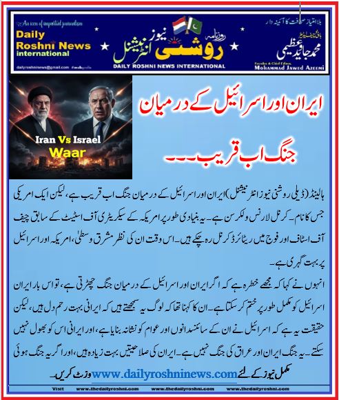 ہالینڈ(ڈیلی روشنی نیوز انٹرنیشنل)ایران اور اسرائیل کے درمیان جنگ اب قریب ہے، لیکن ایک امریکی جس کا نام ۔ کرنل لارنس ولکرسن ہے۔ یہ بنیادی طور پر امریکہ کے سیکریٹری آف اسٹیٹ کے سابق چیف آف اسٹاف اور فوج میں ریٹائرڈ کرنل رہ چکے ہیں۔ اس وقت ان کی نظر مشرق وسطیٰ، امریکہ اور اسرائیل پر بہت گہری ہے۔