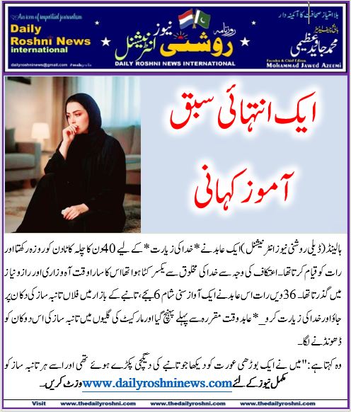 عابد کہتا ہے میں یہ سارا ماجرہ دیکھ رہا تھا جب وہ بوڑھی عورت چلی گئی تو میں نے تانبے کی دوکان والے سے کہا:
