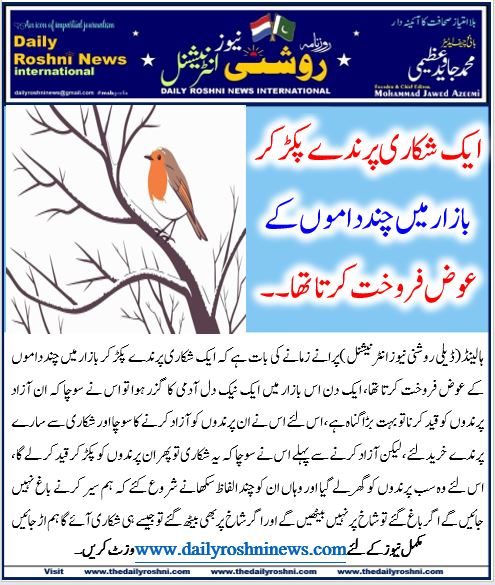 ہالینڈ(ڈیلی روشنی نیوز انٹرنیشنل )پرانے زمانے کی بات ہے کہ ایک شکاری پرندے پکڑ کر بازار میں چند داموں کے عوض فروخت کرتا تها، ایک دن اس بازار میں ایک نیک دل آدمی کا گزر ہوا تو اس نے سوچا کہ ان آزاد پرندوں کو قید کرنا تو بہت بڑا گناہ ہے، اس لئے اس نے ان پرندوں کو آزاد کرنے کا سوچا اور شکاری سے سارے پرندے خرید لئے، لیکن آزاد کرنے سے پہلے اس نے سوچا کہ یہ شکاری تو پهر ان پرندوں کو پکڑ کر قید کر لے گا، اس لئے وہ سب پرندوں کو گهر لے گیا اور وہاں ان کو چند الفاظ سکهانے شروع کئے کہ ہم سیر کرنے باغ نہیں جائیں گے اگر باغ گئے تو شاخ پر نہیں بیٹھیں گے اور اگر شاخ پر بهی بیٹھ گئے تو جیسے ہی شکاری آئے گا ہم اڑ جائیں گے