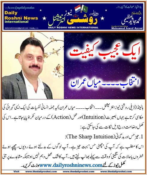 ہالینڈ(ڈیلی روشنی نیوز انٹرنیشنل ۔۔۔ انتخاب ۔۔۔۔ میاں عمران)یہ جملہ انسانی نفسیات کی ایک ایسی گہرائی کی عکاسی کرتا ہے جہاں بصیرت (Intuition) اور عمل (Action) کے درمیان ٹکراؤ پایا جاتا ہے۔ اس کی مکمل وضاحت درج ذیل نکات سے کی جا سکتی ہے: