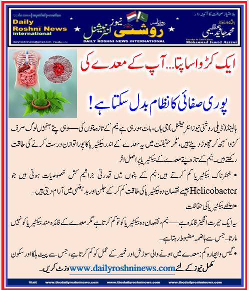 ہالینڈ(ڈیلی روشنی نیوز انٹرنیشنل )جی ہاں، بات ہو رہی ہے نیم کے تازہ پتوں کی — وہی پتے جنہیں لوگ صرف کڑوا سمجھ کر چھوڑ دیتے ہیں، مگر حقیقت میں یہ معدے کے اندر بیکٹیریا کا پورا توازن درست کرنے کی طاقت رکھتے ہیں۔