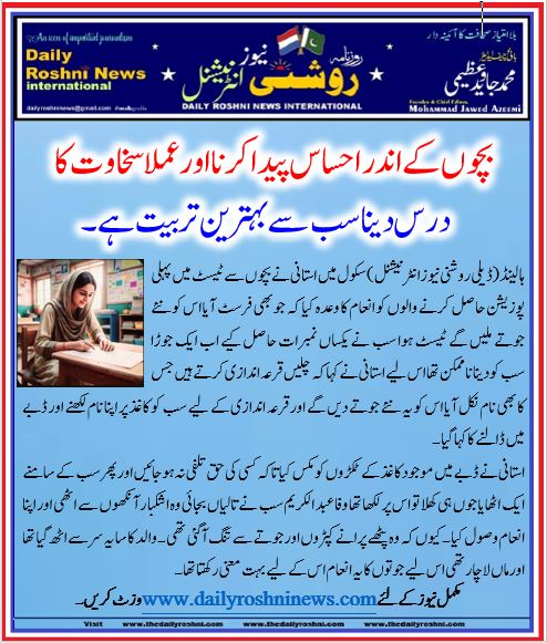 ہالینڈ(ڈیلی روشنی نیوز انٹرنیشنل )سکول میں استانی نے بچوں سے ٹیسٹ میں پہلی پوزیشن حاصل کرنے والوں کو انعام کا وعدہ کیا کہ جو بھی فرسٹ آیا اس کو نئے جوتے ملیں گے ٹیسٹ ہوا سب نے یکساں نمبرات حاصل کیے اب ایک جوڑا سب کو دینا نا ممکن تھا اس لیے استانی نے کہا کہ چلیں قرعہ اندازی کرتے ہیں جس کا بھی نام نکل آیا اس کو یہ نئے جوتے دیں گے اور قرعہ اندازی کے لیے سب کو کاغذ پر اپنا نام لکھنے اور ڈبے میں ڈالنے کا کہا گیا۔