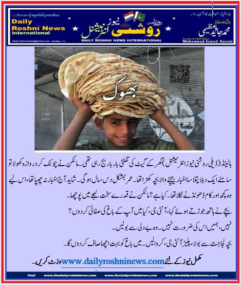 ہالینڈ(ڈیلی روشنی نیوز انٹرنیشنل )گھر کے گیٹ کی گھنٹی بار بار بج رہی تھی۔ مالکن نے چونک کر دروازہ کھولا تو سامنے ایک دبلا پتلا سا اخبار بیچنے والا بچہ کھڑا تھا۔ عمر بمشکل دس سال ہوگی۔ شاید آج اخبار نہ چھپا تھا، اس لیے وہ کچھ اور کام ڈھونڈنے نکلا تھا۔