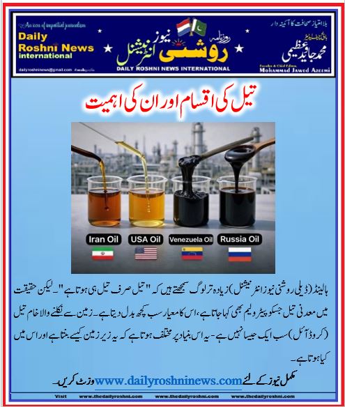 ہالینڈ(ڈیلی روشنی نیوز انٹرنیشنل )زیادہ تر لوگ سمجھتے ہیں کہ “تیل صرف تیل ہی ہوتا ہے”۔ لیکن حقیقت میں معدنی تیل جسکو پیٹرولیم بھی کہا جاتا ہے، اس کا معیار سب کچھ بدل دیتا ہے۔ زمین سے نکلنے والا خام تیل (کروڈ آئل) سب ایک جیسا نہیں ہے – یہ اس بنیاد پر مختلف ہوتا ہے کہ یہ زیر زمین کیسے بنتا ہے اور اس میں کیا ہوتا ہے