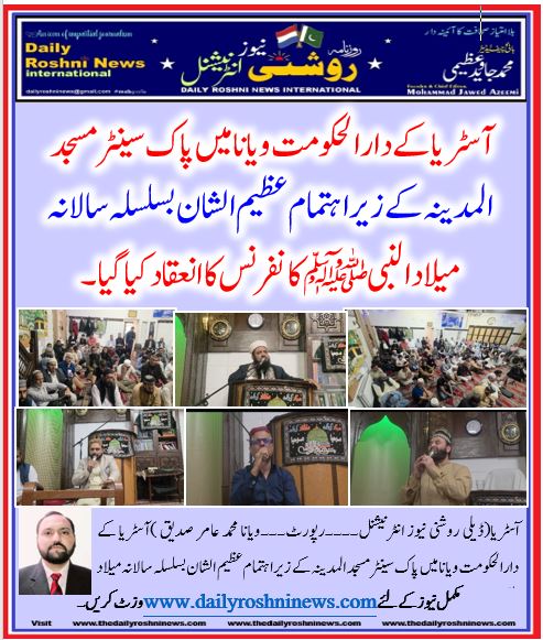 آسٹریا کے دارالحکومت ویانا میں پاک سینٹر مسجد المدینہ کے زیر اہتمام عظیم الشان بسلسلہ سالانہ میلاد النبیﷺ کانفرنس کا انعقاد کیا گیا۔