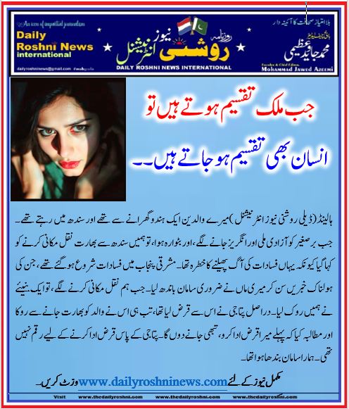 ہالینڈ(ڈیلی روشنی نیوز انٹرنیشنل )میرے والدین ایک ہندو گھرانے سے تھے اور سندھ میں رہتے تھے۔ جب برصغیر کو آزادی ملی اور انگریز جانے لگے، اور بٹوارہ ہوا، تو ہمیں سندھ سے بھارت نقل مکانی کرنے کو کہا گیا کیونکہ یہاں فسادات کی آگ پھیلنے کا خطرہ تھا۔ مشرقی پنجاب میں فسادات شروع ہو گئے تھے، جن کی ہولناک خبریں سن کر میری ماں نے ضروری سامان باندھ لیا۔ جب ہم نقل مکانی کرنے لگے، تو ایک بنیئے نے ہمیں روک لیا۔ دراصل پتا جی نے اس سے قرض لیا تھا، تب ہی اس نے والد کو بھارت جانے سے روکا اور مطالبہ کیا کہ پہلے میرا قرض ادا کرو، تبھی جا نےدوں گا۔ پتا جی کے پاس قرض ادا کرنے کے لیے رقم نہیں تھی۔ ہمارا سامان بندھا ہوا تھا۔