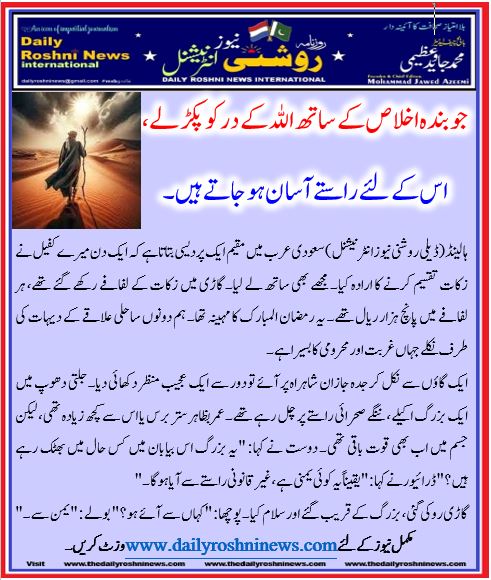 ہالینڈ(ڈیلی روشنی نیوز انٹرنیشنل )سعودی عرب میں مقیم ایک پردیسی بتاتا ہے کہ ایک دن میرے کفیل نے زکات تقسیم کرنے کا ارادہ کیا۔ مجھے بھی ساتھ لے لیا۔ گاڑی میں زکات کے لفافے رکھے گئے تھے، ہر لفافے میں پانچ ہزار ریال تھے۔ یہ رمضان المبارک کا مہینہ تھا۔ ہم دونوں ساحلی علاقے کے دیہات کی طرف نکلے جہاں غربت اور محرومی کا بسیرا ہے۔