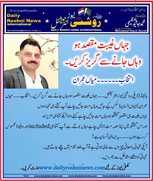 ہالینڈ(ڈیلی روشنی نیوز انٹرنیشنل ۔۔۔ جہاں غیبت مقصد ہو وہاں جانے سے گریز کریں ۔ انتخاب ۔۔۔ میاں عمران)جہاں انسان ڈسکس کیے جائیں وہاں مت جائیں چاہے آپ کتنے ہی تنہاء ہوں