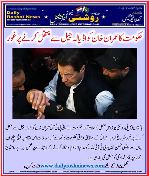 پاکستان(ڈیلی روشنی نیوز انٹرنیشنل )اسلام آباد: حکومت نے بانی پی ٹی آئی عمران خان کو اڈیالہ جیل سے منتقل کرنے پر غور شروع کردیا۔