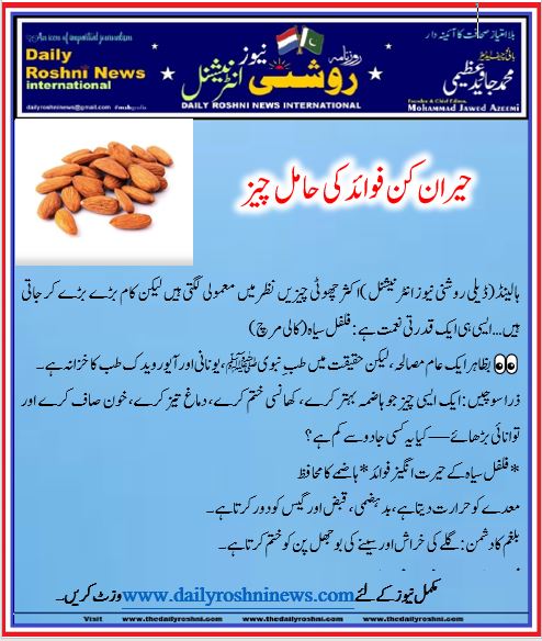 ہالینڈ(ڈیلی روشنی نیوز انٹرنیشنل )اکثر چھوٹی چیزیں نظر میں معمولی لگتی ہیں لیکن کام بڑے بڑے کر جاتی ہیں… ایسی ہی ایک قدرتی نعمت ہے:فلفل سیاہ (کالی مرچ)