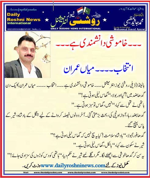 ہالینڈ(ڈیلی روشنی نیوز انٹرنیشنل ۔۔۔ خاموشی دانشمندی ہے ۔۔۔ انتخاب ۔۔۔۔ میاں عمران)ایک دن گدھا ضد میں آ گیا اور بولا، “گھاس نیلی ہوتی ہے!”