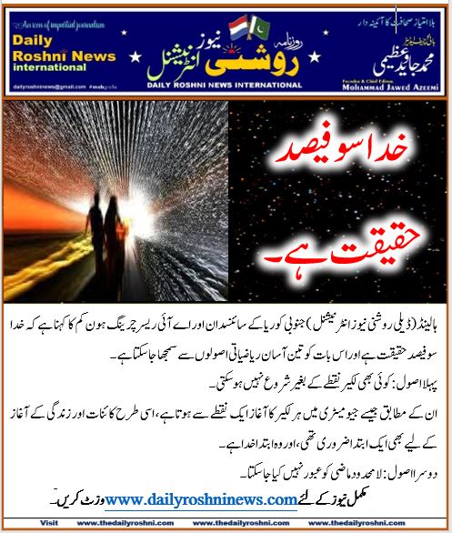 ہالینڈ(ڈیلی روشنی نیوز انٹرنیشنل )جنوبی کوریا کے سائنسدان اور اے آئی ریسرچر ینگ ہون کم کا کہنا ہے کہ خدا سو فیصد حقیقت ہے اور اس بات کو تین آسان ریاضیاتی اصولوں سے سمجھا جا سکتا ہے۔