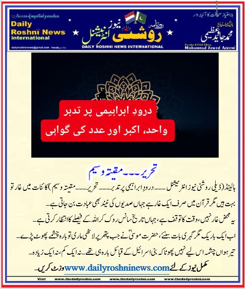 ہالینڈ(ڈیلی روشنی نیوز انٹرنیشنل ۔۔۔ درودِ ابراہیمی پر تدبر۔۔۔ تحریر۔۔۔مقیتہ وسیم )کائنات میں غار تو بہت ہیں مگر قرآن میں صرف ایک غار ہے