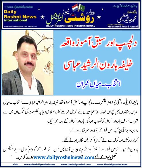 ہالینڈ(ڈیلی روشنی نیوز انٹرنیشنل ۔۔۔ دلچسپ اور سبق آموز واقعہ خلیفہ ہارون الرشید عباسی۔۔۔ انتخاب ۔ میاں عمران)خاندان کا پانچواں خلیفہ تھا‘ عباسیوں نے طویل عرصے تک اسلامی دنیا پر حکومت کی لیکن ان میں سے شہرت صرف ہارون الرشید کو نصیب ہوئی۔ ہارون الرشید کے دور میں ایک