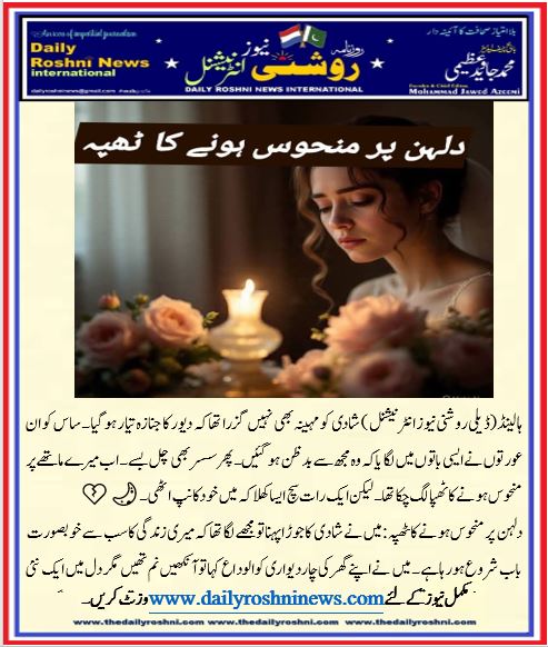 ہالینڈ(ڈیلی روشنی نیوز انٹرنیشنل ) شادی کو مہینہ بھی نہیں گزرا تھا کہ دیور کا جنازہ تیار ہو گیا۔ ساس کو ان عورتوں نے ایسی باتوں میں لگایا کہ وہ مجھ سے بدظن ہو گئیں۔ پھر سسر بھی چل بسے۔ اب میرے ماتھے پر منحوس ہونے کا ٹھپا لگ چکا تھا۔ لیکن ایک رات سچ ایسا کھلا کہ میں خود کانپ اٹھی۔ 🌙💔