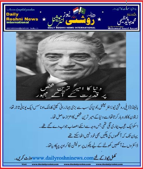 ہالینڈ(ڈیلی روشنی نیوز انٹرنیشنل )دنیاکی سب سے بڑی جہاز رانی کمپنی کا مالک اوناسس ایک یونانی تاجر تھا،