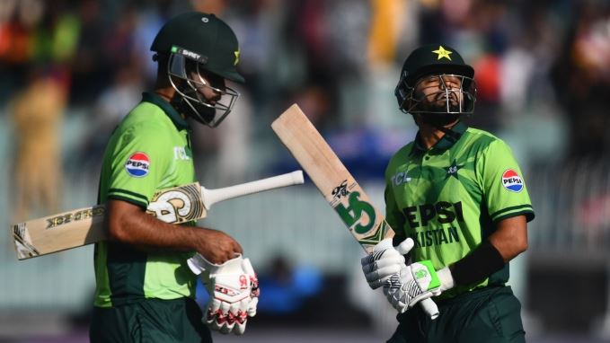 3 وکٹیں گرنے کے بعد سلمان علی آغا اور صائم ایوب نے ذمہ درانہ بیٹنگ کی اور شراکت داری قائم کرتے ہوئے دونوں بیٹرز نے نصف سنچریاں اسکور کیں۔