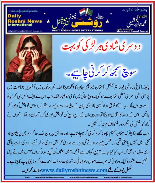دوسری شادی ہر لڑکی کو بہت سوچ سمجھ کر کرنی چاہیے۔