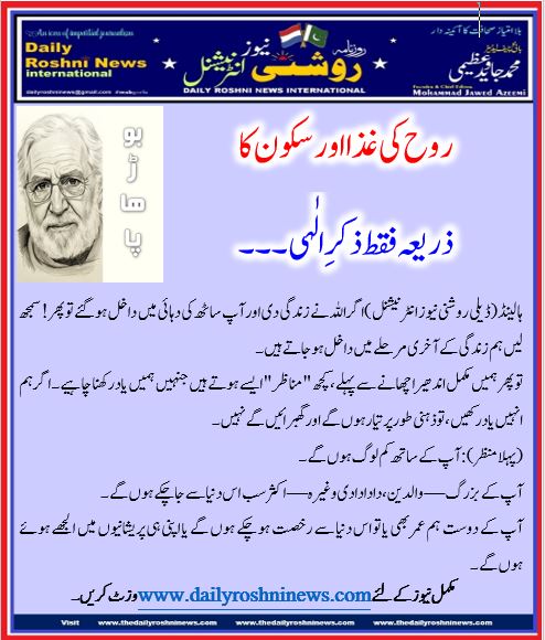 روح کی غذا اور سکون کا ذریعہ فقط ذکرِ الٰہی
