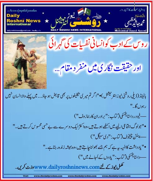 روس کے ادب کو انسانی نفسیات کی گہرائی اور حقیقت نگاری کی وجہ سے منفرد مقام حاصل ہے۔