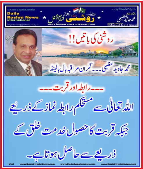 اللہ تعالیٰ سے مستحکم رابطہ نماز کے ذریعے جبکہ قربت کا حصول خدمت خلق کے ذریعے سے حاصل ہو تا ہے۔