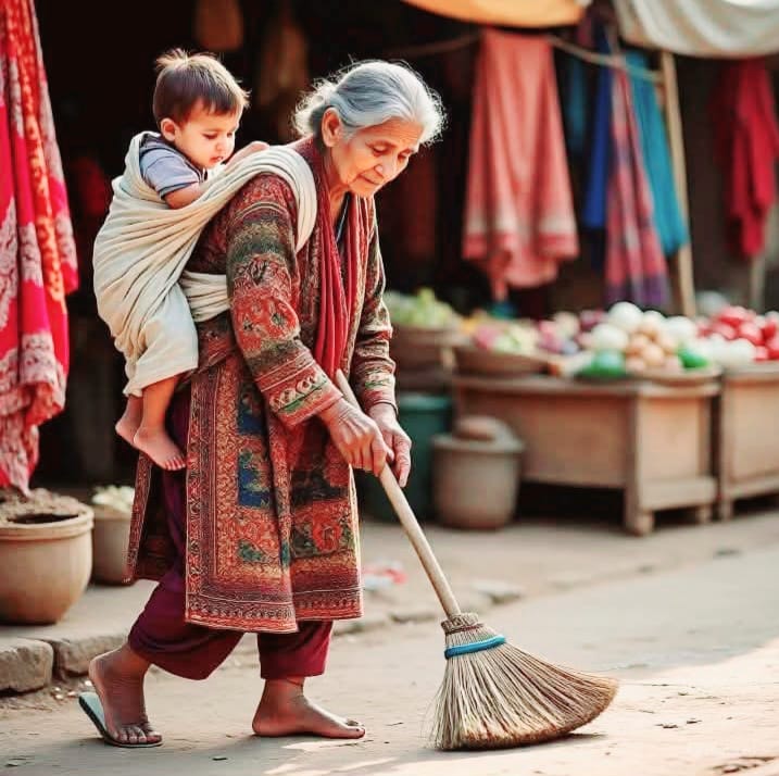 دکانوں میں مجھے اٹھا کر اپنے پیچھے جھولی نما کپڑے میں ڈال کر اپنے پیچھے لٹکانے کے بعد صرف ایک ہاتھ سے صفائی کرنا بہت مشکل هو جاتا اس لیے میری ماں کچھ پیسے جمع کر کے برش پالش اور ہتھوڑی کیل دھاگہ اور سوئے خریدنے کے بعد جوتے سلائی کرنے کا کام شروع کر دیتی ھے۔ میری ماں مجھے گود میں لٹا کر ایک ھاتھ اور منہ کی مدد سے جوتے سلائی کرتی ھے۔ کچھ خدا ترس لوگ میری ماں کو اجرت سے زیادہ پیسے دے جاتے ھیں جبکہ کچھ اوباش نوجوان جان بوجھ سیوریج کی نالی میں جوتا گندا کر کے میری ماں کو پالش کرنے کے لیے دیتے ھیں اور جب اس جوتے کو منہ اور کپڑے کی مدد سے میری ماں صاف کرتی ہے تو میری ماں کی بے بسی پر ہنستے ھیں ۔۔۔۔۔