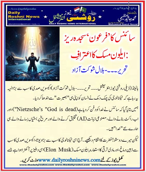 سائنس کا ’فرعون‘ سجدہ ریز: ایلون مسک کا اعترافِ خدا اور جدید الحاد کے تابوت میں آخری کیل!۔۔۔تحریر۔۔۔- بلال شوکت آزاد