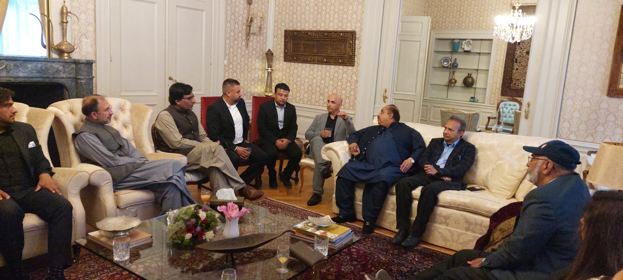 چائے کی میز پر گفتگو کا سلسلہ شروع ہو گیا۔ اس دوران سینیئر صحافی راجہ فاروق حیدر ، منصور عالم ، عرفان علی کا ظمی اور دیگر صحافیوں نے سفیر پاکستان سے سوالات کئے جن کے انہوں تسلی بخش جوابات دیئے۔