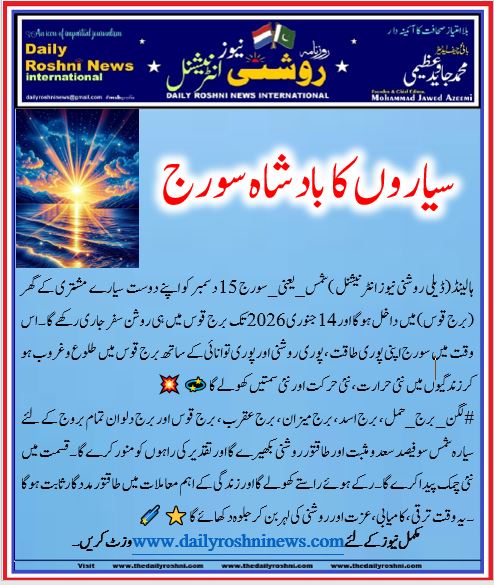 #شمس_یعنی_سورج 15 دسمبر کو اپنے دوست سیارے مشتری کے گھر (برج قوس) میں داخل ہو گا اور 14 جنوری 2026 تک برج قوس میں ہی روشن سفر جاری رکھے گا ۔ اس وقت میں سورج اپنی پوری طاقت ، پوری روشنی اور پوری توانائی کے ساتھ برج قوس میں طلوع و غروب ہو کر زندگیوں میں نئی حرارت ، نئی حرکت اور نئی سمتیں کھولے گا💫💥