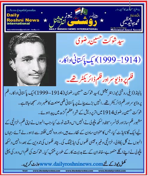 ہالینڈ(ڈیلی روشنی نیوز انٹرنیشنل )سید شوکت حسین رضوی (1914–1999) ایک پاکستانی اداکار، فلم پروڈیوسر اور فلم ڈائریکٹر تھے۔ انہیں بڑے پیمانے پر پاکستانی فلمی صنعت کا علمبردار سمجھا جاتا ہے۔