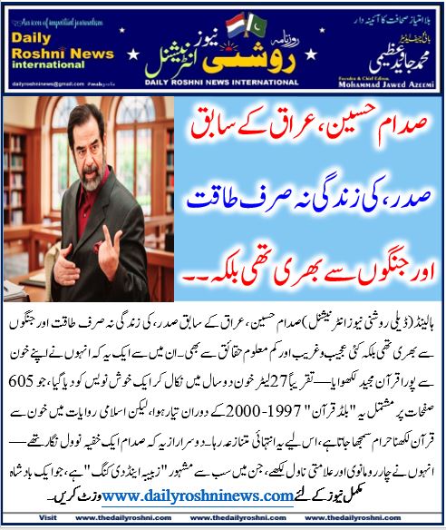 ہالینڈ(ڈیلی روشنی نیوز انٹرنیشنل )صدام حسین، عراق کے سابق صدر، کی زندگی نہ صرف طاقت اور جنگوں سے بھری تھی بلکہ کئی عجیب و غریب اور کم معلوم حقائق سے بھی۔ ان میں سے ایک یہ کہ انہوں نے اپنے خون سے پورا قرآن مجید لکھوایا—تقریباً 27 لیٹر خون دو سال میں نکال کر ایک خوش نویس کو دیا گیا، جو 605 صفحات پر مشتمل یہ “بلڈ قرآن” 1997-2000 کے دوران تیار ہوا، لیکن اسلامی روایات میں خون سے قرآن لکھنا حرام سمجھا جاتا ہے، اس لیے یہ انتہائی متنازعہ رہا۔ دوسرا راز یہ کہ صدام ایک خفیہ نوول نگار تھے—انہوں نے چار رومانوی اور علامتی ناول لکھے، جن میں سب سے مشہور “زبیبہ اینڈ دی کنگ” ہے، جو ایک بادشاہ اور عوامی لڑکی کی محبت کی کہانی ہے اور مبصرین کے مطابق خود صدام کی زندگی کی عکاسی کرتی ہے۔ تیسرا، صدام متعدد باڈی ڈبلز استعمال کرتے تھے جو پلاسٹک سرجری کروا کر ان جیسے بنائے جاتے تھے، تاکہ قاتلوں سے بچ سکیں—یہ افواہ نہیں بلکہ متعدد ذرائع اور سابق سی آئی اے رپورٹس میں تصدیق شدہ ہے۔ آخر میں، 2003 میں ان کی گرفتاری ایک چھوٹے سے “سپائیڈر ہول” نما غار میں ہوئی، جہاں وہ داڑھی بڑھا کر اور سادہ کپڑوں میں چھپے تھے—یہ منظر دنیا بھر میں حیرت کا باعث بنا۔ یہ راز صدام کی پراسرار شخصیت کو مزید گہرا کرتے ہیں۔