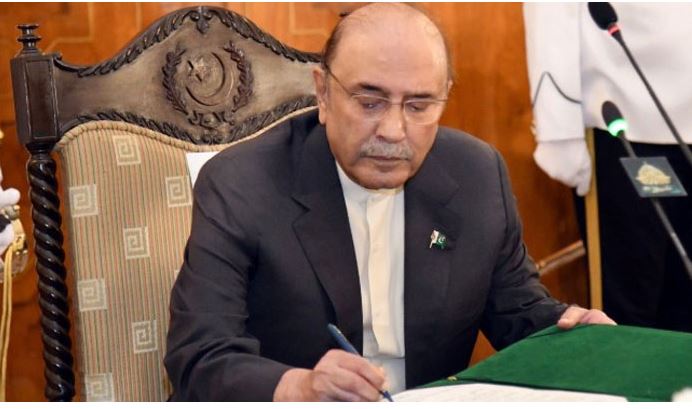 صدر مملکت آصف علی زرداری نے آرمی، نیوی اور ائیر فورس ترمیمی بلوں کی منظوری دیدی۔