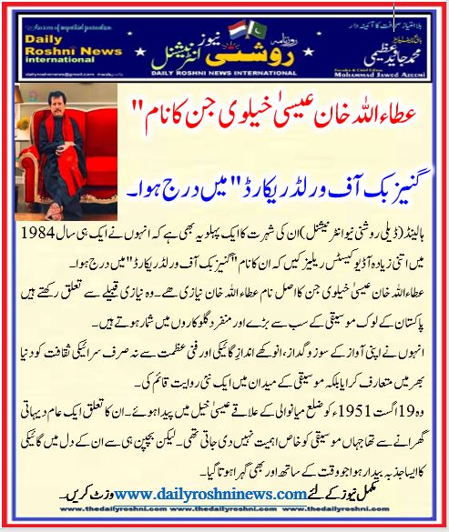 عطاءاللہ خان عیسیٰ خیلوی جن کا نام “گنیز بک آف ورلڈ ریکارڈ” میں درج ہوا۔