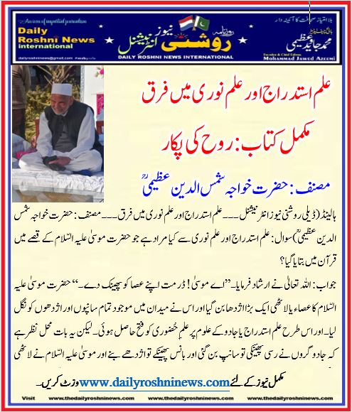 ہالینڈ(ڈیلی روشنی نیوز انٹرنیشنل ۔۔۔ علم استدراج اور علم نوری میں فرق۔۔۔ مصنف : حضرت خواجہ شمس الدین عظیمی ؒ)سوال: علم استدراج اور علم نوری سے کیا مراد ہے جو حضرت موسیٰ علیہ السّلام کے قصے میں قرآن میں بتایا گیا؟