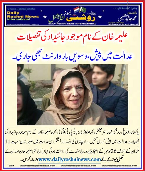 پاکستان (ڈیلی روشنی نیوز انٹرنیشنل )راولپنڈی: بانی پی ٹی آئی کی بہن علیمہ خان کے نام موجود جائیداد کی تفصیلات عدالت میں پیش کردی گئیں۔