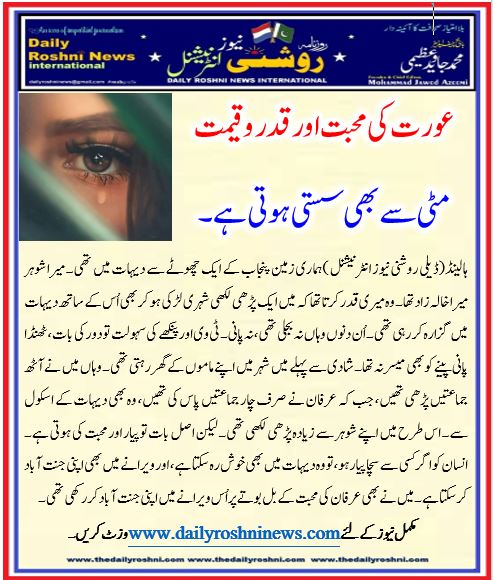 عورت کی محبت اور قدر و قیمت مٹی سے بھی سستی ہوتی ہے۔